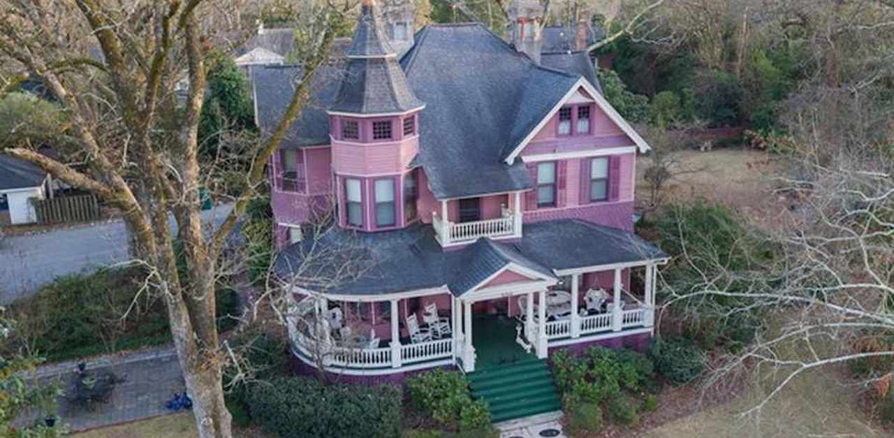 There are little tables set up in and around the house in various places. Pink victorian house editorial photo. Podcast episode on the lost victorian homes of los angeles my podcast (lameekly.tumblr.com). #pink #victorian #pink victorian house #house #trees #baby pink #barbie #nature #dreamhouse. Wide angle of upper class victorian gothic white three story mansion house at night.